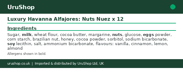 UruShop Luxury Havanna Alfajores: Nuts Nuez x 12