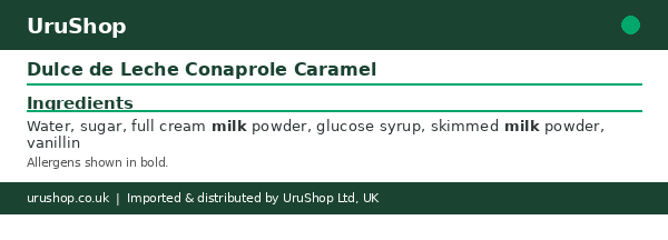 Ingredients: Water, sugar, full cream milk powder, glucose syrup, skimmed milk powder, vanillin