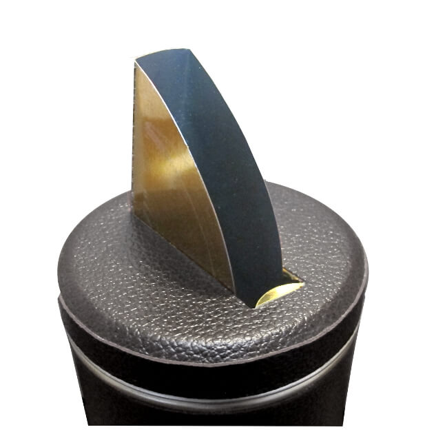 Very handy storeage tin with a flip up and down dispensing spout to easily pour yerba into the mate cup without covering your table in yerba! Black leather,Measurements:
