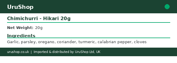 To Prepare: mix one part Chimichurri, one part water and one part vinegar. Allow to hydrate for a few minutes then add oil if desired