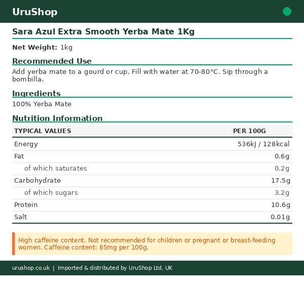 Sara Azul Extra Smooth Yerba Mate 1Kg £10.50