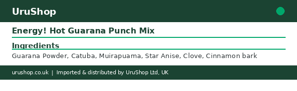 Ingredients: Guarana Powder, Catuba, Muirapuama, Star Anise, Clove, Cinnamon bark