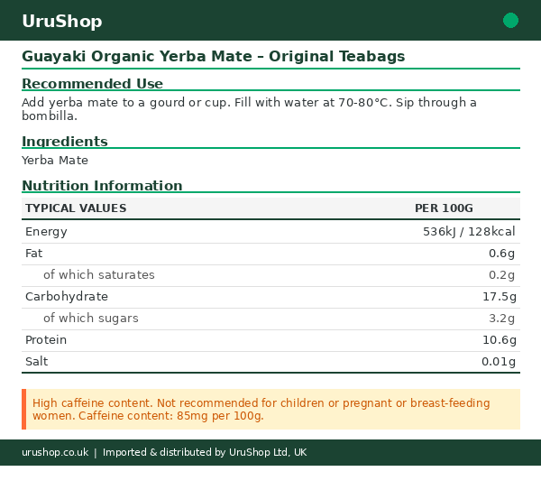 This product is now discontinued… … if you are looking for a good alternative we recommend the following: Kraus organic teabags unsmoked yerba mate